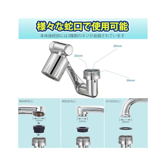 「1080度自由回転設計」水流の方向を自由に調節できて、洗い物が楽になります