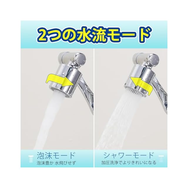「2段階切り替え機能」蛇口の先に取り付けるだけで、シャワーモードと泡沫モードを使用できます