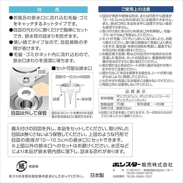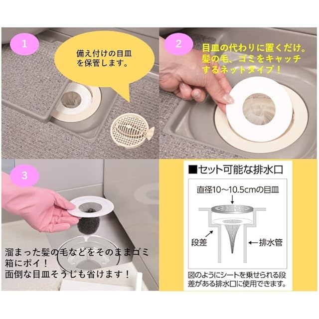 10~10.5cmの円形の排水口に使用可能