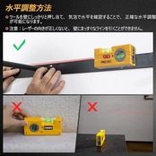 【レーザーライン】対象物の水平や垂直を確認するのみならず、ラインレーザーにより棚の取付けや絵画や写真を貼る場合などの水平の位置合わせや、垂直位置の揃えなどに活用できます。レーザークラス:クラス2 、出力 < 1mW。