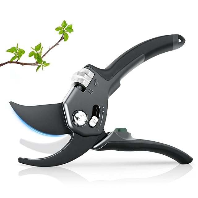 【開きの幅を調節可能】この植木鋏は剪断力調整装置が搭載されており、剪定ニーズに応じて刃の開きを自由に調整でき、異なる太さの枝も簡単に切ることができます。小枝から広葉樹の枝まであらゆるものを扱うことができます。