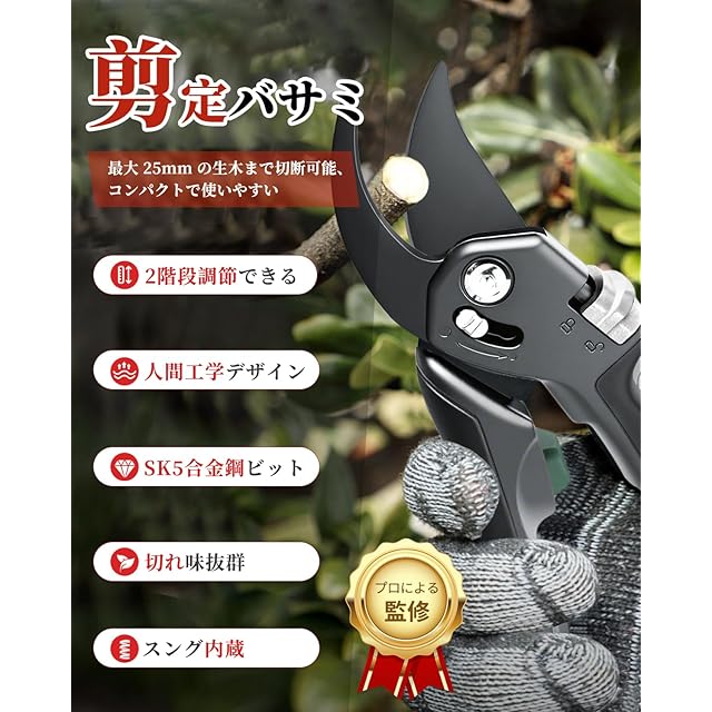 商品名:【2025人気庭師のおすすめ】剪定バサミ Pycuse 剪定鋏 剪定ばさみ 2段階調節可能 SK85高炭素鋼 耐久性5倍 疲れにくい人間工学アルミ合金グリップ 枝切りバサミ 園芸ハサミ 園芸用はさみ 錆びにくい 開口部25mm 軽量化アルミハンドル 握りやすい 果樹 庭木 盆栽 庭園作業 ガーデニング 観葉植物