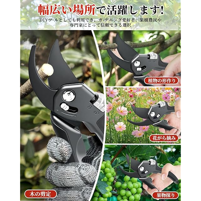 【広い適用範囲】本製品は園芸用具とDIY用具として使用でき、生け花、植木の剪定、鉢植え、摘果、農作業、家庭菜園などのシーンで力を発揮し、素人の園芸からプロの庭師の造園まで適用できます。