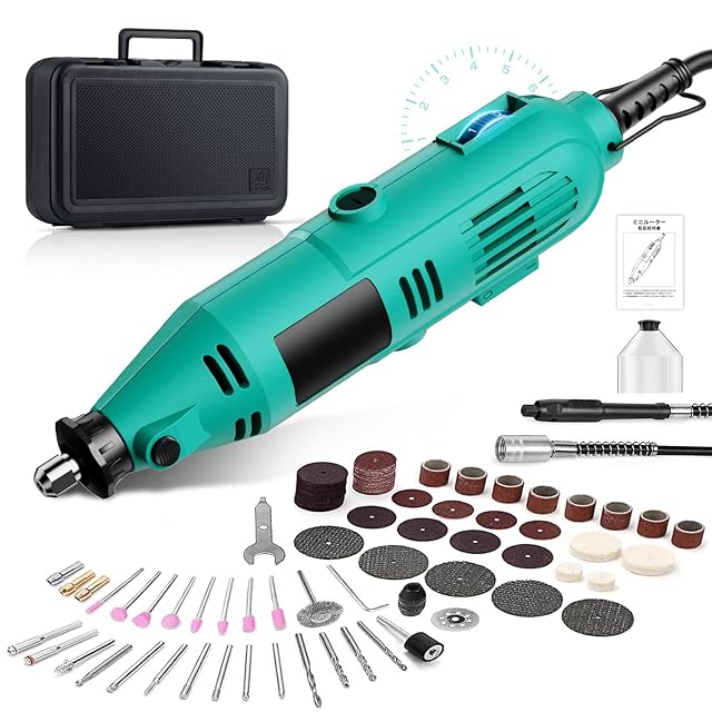 ミニルーター 6段変速可能 40000RPM回転/分 リューター 電動 ルーター 工具 電動リューター 124PCS 軽量 DIY創作用 切断/木工/穴あけ/彫刻/切断/切削/研磨/汚れ落とし/錆落とし/細工物 収納ケース付 日本語取扱説明書付き(Green)