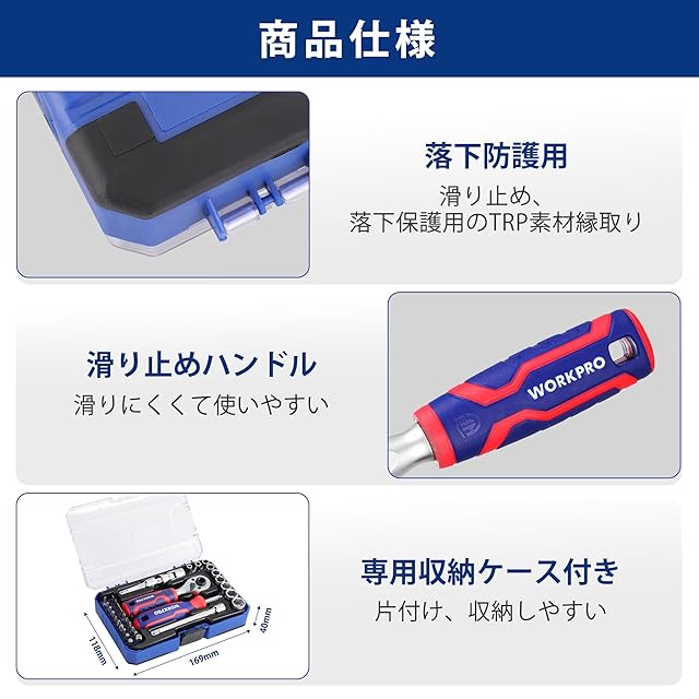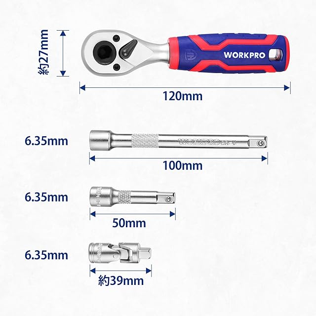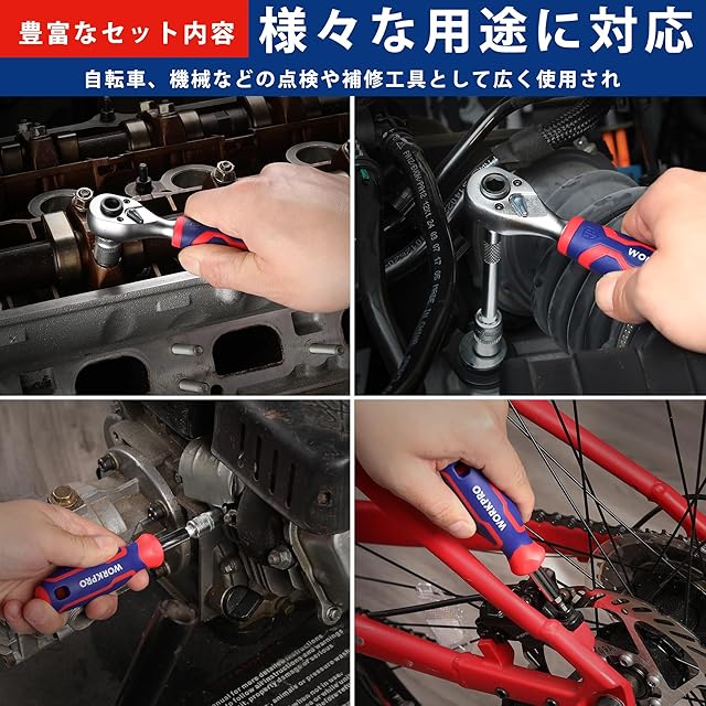 WORKPRO ビットラチェットセット ソケットレンチセット ドライバー セット 34点組 差込角6.35mm(1/4インチ) 両用ヘッド ミニタイプ ラチェットレンチ エクステンションバー ビットホルダー 72歯 自転車修理 メンテナンス 工具 道具 DIY 専用収納ケース付属 | つむぎ屋