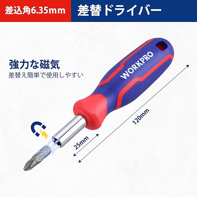 商品名:WORKPRO ビットラチェットセット ソケットレンチセット ドライバー セット 34点組 差込角6.35mm(1/4インチ) 両用ヘッド ミニタイプ ラチェットレンチ エクステンションバー ビットホルダー 72歯 自転車修理 メンテナンス 工具 道具 DIY 専用収納ケース付属