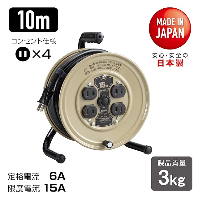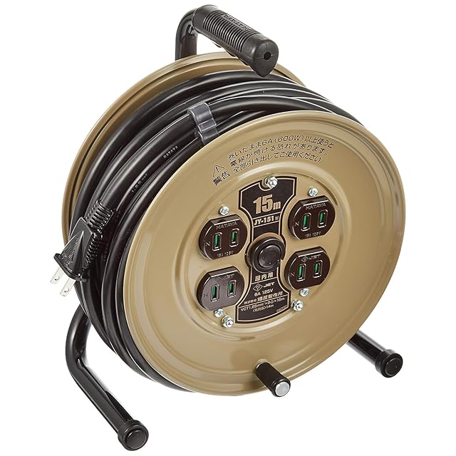 商品名:ハタヤ (HATAYA) コードリール 15m 2P 4個口コンセント 125V 15A 防塵シャッター付き 工場 アウトドア レジャー キャンプ JY-151