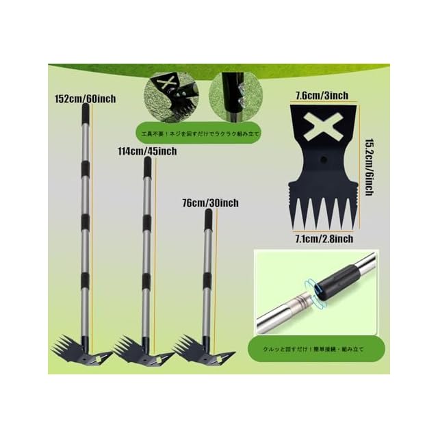 草取り道具 76cm/114cm/152cm 草刈りレーキ/鍬 草削り 立ったまま 草取り器 立っ た まま 庭 の 雑草むしり らくらく 除草 畑 あぜ 道 雑草取り道具 草取り鎌 草刈り雑草根こそぎレーキ 安全 お手軽 鎌 農具 草むしり 便利 グッズ 田んぼ | つむぎ屋