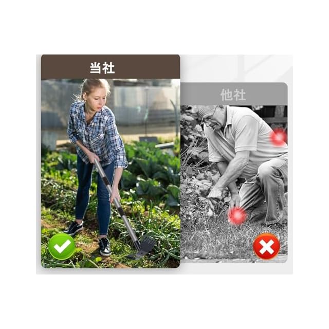 ③【高耐久・プロ仕様の品質】 一般的なカーボンスチールとは異なり、当社の除草熊手は鋳造スチールを使用し、特殊な溶接加工で頑丈に仕上げました。さびにくく、変形しにくく、使用後は水でさっと洗い流せるのでメンテナンスも簡単。長く愛用できる草刈り道具をお探しの方におすすめです。
