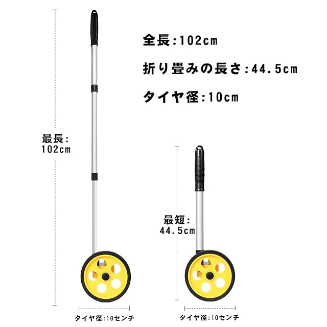 Zozen ウォーキングメジャー 距離測定器 ロードメジャー 4インチ (100cmまで延長可能)伸縮する式10cm~9999m 測定 ホイール 測定 ホイール マーク付きメートル法黄色 体育器具 距離 計測 学校 住宅の測量 | つむぎ屋