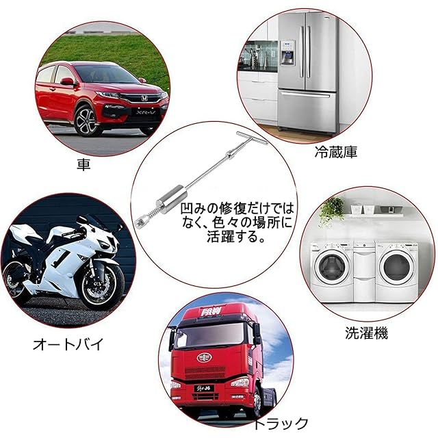この商品は車、バイクのボディ&フェンダーの補修や、ドア、冷蔵庫、洗濯機などの凹み修理工具です。