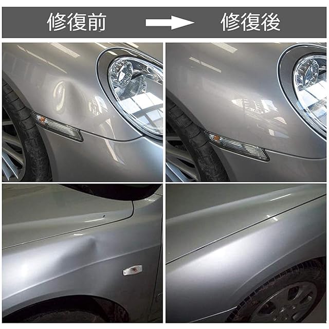 注意事項:①大き過ぎる凹み、小さすぎる凹み、鋭角についている凹み、プレスラインにかかっている凹み等に関しては修復不可な場合がございます.②これはDIYの簡単作業で100%完全な修復をされないです。作業方法と個人的原因によって、修復効果も違います.