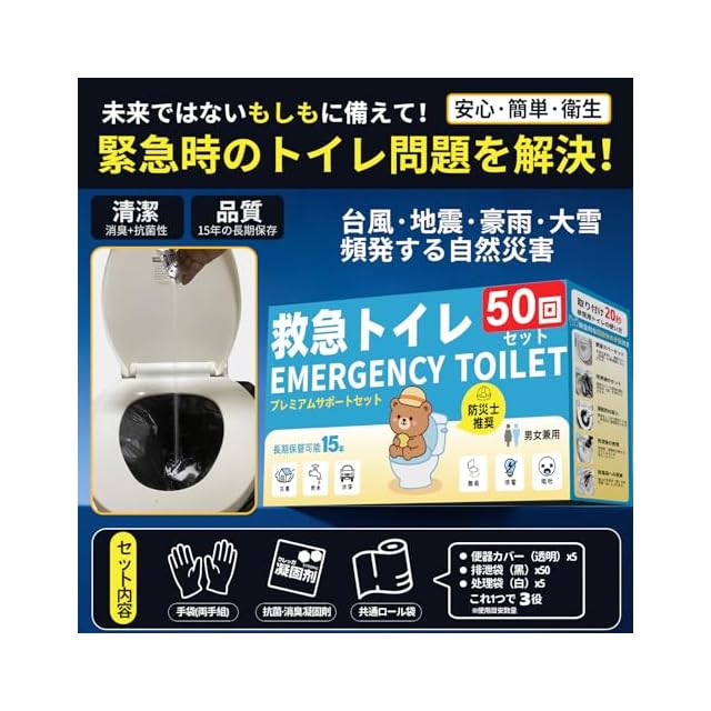 Strcoij 簡易トイレ 災害用 15年保存 携帯トイレ 防災グッズ 防災トイレ 災害用 非常用 緊急用/キャンプテント用/車内用/介護用(50回)
