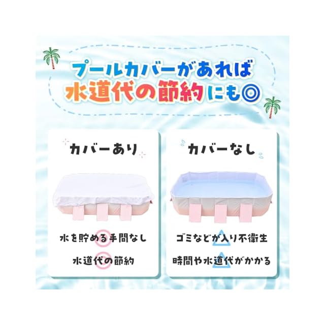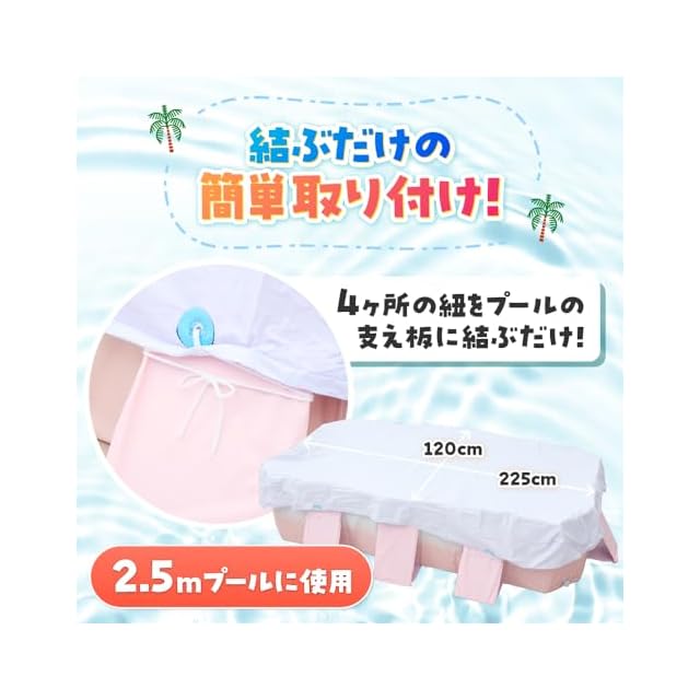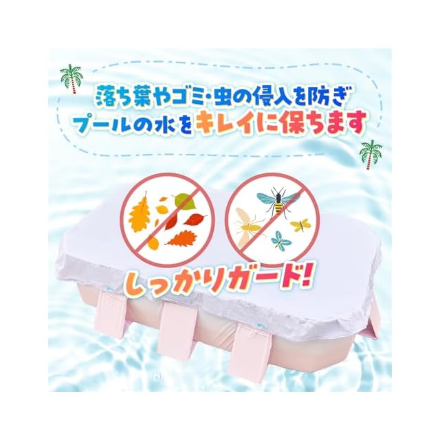 【 ハッピーファミリープール用カバー 】プールカバーは数多く御座いますが、弊社のプールカバーはここが違います!1.プールの水の保管にぴったり! カバーをすることで、プールの水をきれいに保管することができます。落ち葉や虫などのゴミから、プールの水を守ってくれます。2.水道代の節約に! カバーをかけることで、プールの水を毎回取り換える必要がなくなります。水を貯める手間も省けるので、すぐにプールで遊ぶことができます。3.取り付け、取り外しが簡単! プールカバーの4か所に紐が付いているので、プールの支え板に結んでください。紐を結ぶだけなので、カバーの取り付け・取り外しはとても簡単です。