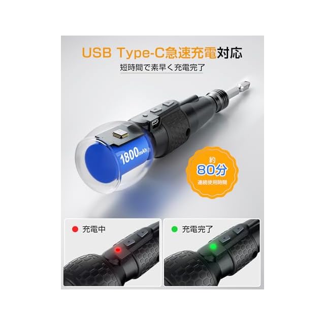 ✅【1800mAh大容量バッテリー・80分連続使用!】従来900mAh容量電池と比べて、Yacooda電動ドライバーはバッテリー容量2倍以上!3.7V・1800mAh超大容量バッテリー内蔵しており、約100分でフル充電が完了してから、約80分連続使用可能(無負荷状態)です。組み立て途中の電池切れに悩みなく、気楽な作業が可能!