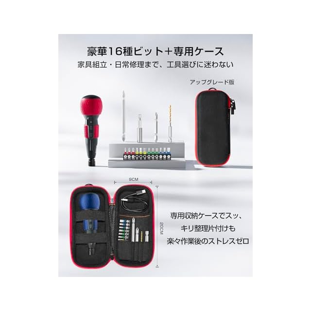 Yacooda 電動ドライバー 小型 強力 【16点ビット付き 収納ケース付き】 電動4N.m 手動10N.m USB-C充電式 高輝度LEDライト 軽量 DIY 操作簡単 女性/初心者対応 2025バージョンアップ版 敬老の日 誕生日プレゼント ブラック | つむぎ屋