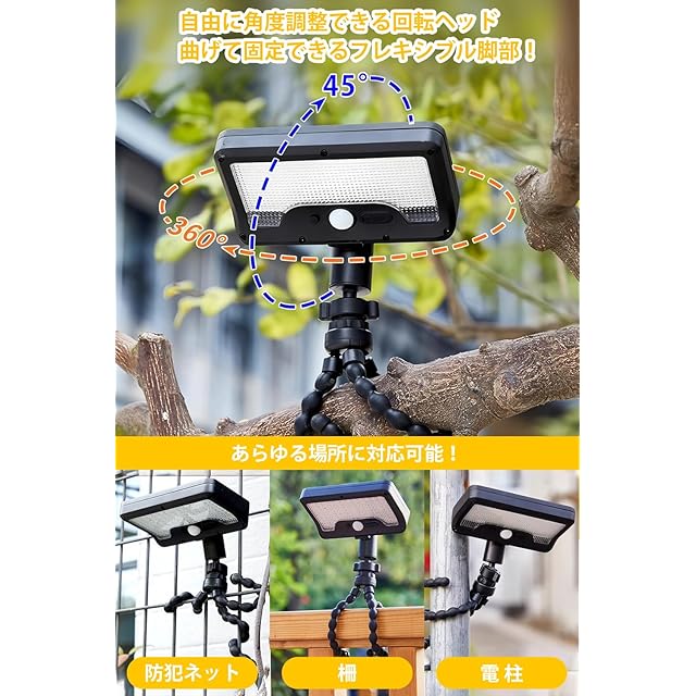 ソーラーライト 屋外 人感センサーライト 自在曲がり三脚付 1000lm 高輝度 昼白色6500K 3つ感知モード 明暗/人感センサー 360°調整可能 USB/ソーラー充電式 自動点灯消灯 IP65防水 省エネ 取り付け簡単 防犯対策 庭 ガーデン 駐車場 停電対策 (ブラック)