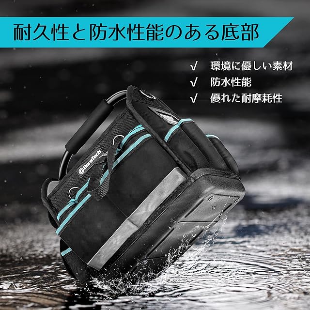 【高品質な素材】多機能ツールバッグの主な素材は900Dポリエステルを採用しており、ハンドルは鋼製パイプ&EVA、底板は厚みがあるプラスチックです。ツールバッグ本体は探しやすく、取り出しやすいフルオープンタイプです。