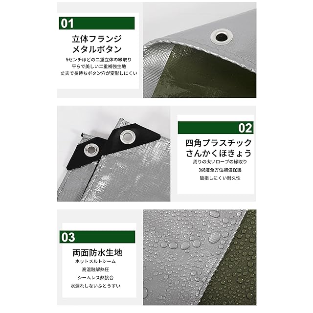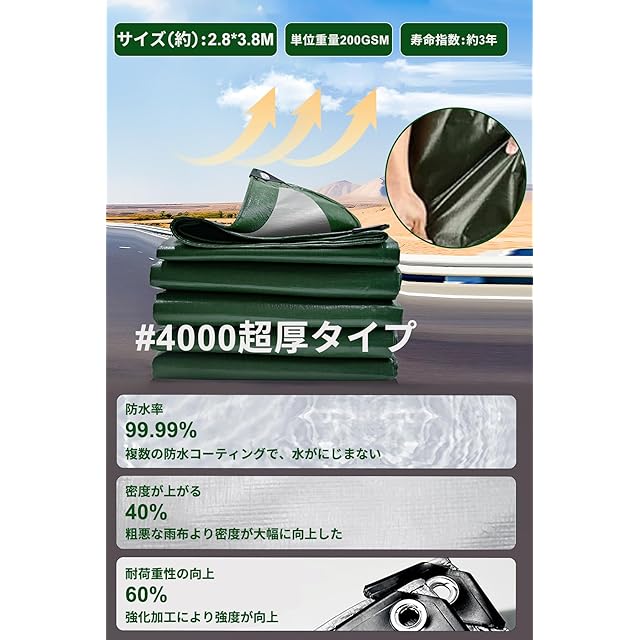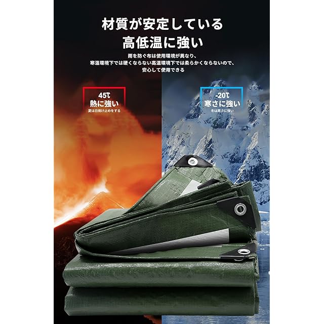 【防水&UVカットで多用途に活用】 強力な防水加工で雨や雪をしっかり遮断!UVカット効果で日焼け防止にも。キャンプ、お花見、車のカバー、工事養生など、アウトドアから防災まで幅広く使える万能シート。軽量ながら耐久性抜群で長くご利用いただけます。
