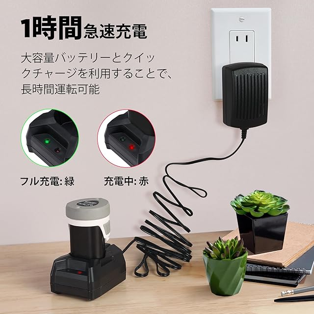 【効率向上12V充電式】12V強力バッテリに全新進化、大容量バッテリーが付きで、無負荷運転時間80分使用可能になり、芝生の手入れが楽になります。コードレスタイプなので、コードが絡まったりひっかかる心配もなく、様々な場所で使用できます。バッテリーバック装置式とアタフタ充電器が付きで急速充電できます。フル充電の時間はわずか1時間だけかかり、充電が完了すると充電器に緑ランプが点灯します。ストローク数は一分1100回、剪定の効率が向上になります。