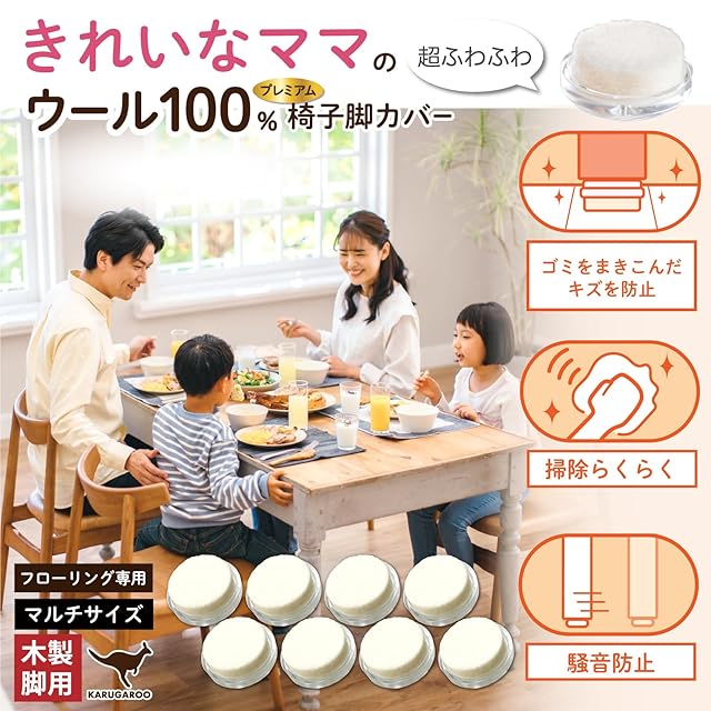 椅子脚カバー カルガルー 天然ウール フェルト 椅子の足カバー 椅子脚キャップ 椅子の脚 カバー 家具スライダー 丸形 長方形 正方形 滑りやすく 取れない カンガルー マルチサイズ フリーサイズ 日本製 木製脚 8個入x2セット シェリー Shelly | つむぎ屋