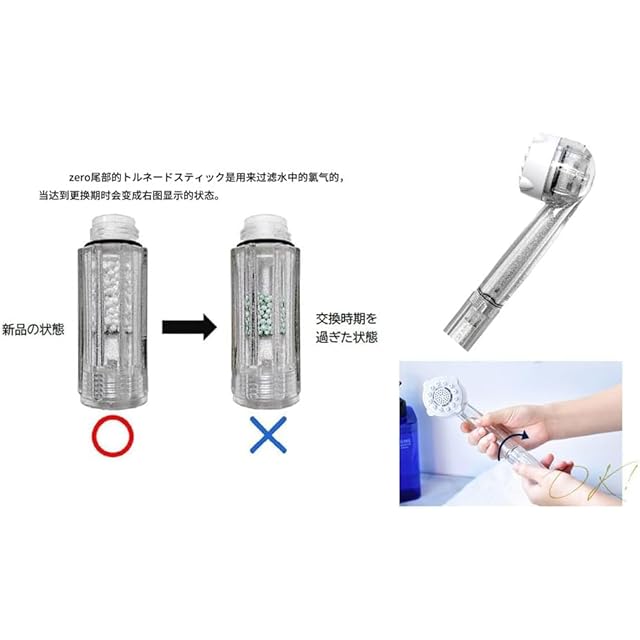 【トルネードスティックの適切な交換時期について】トルネードスティックの性能を最大限に活かし、常に快適なシャワー体験をお楽しみいただくため、目安として 3 ヶ月程度での交換をおすすめいたします。ただし、1 日何回使用されるかや、ご自宅の地域水質によっては、交換時期が前後することがあります。水質が硬いエリアでは、目安よりも早く交換が必要になる場合もございます。ご使用中に性能が低下したり、目視で汚れが目立った際は、是非ご自身の判断で交換を行ってください。定期的な点検と適切な交換により、いつも安定した性能でお客様をサポートいたします。