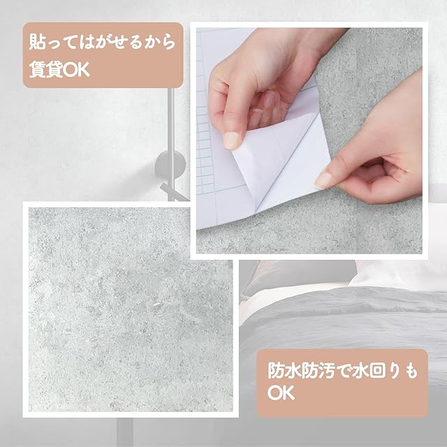 【部屋をおしゃれに簡単DIY】インダストリアルな雰囲気に人気のコンクリート柄調の剥がせる壁紙です!シールタイプの壁紙なので、切って、剥がして貼るの3STEPだけで、気軽に気分をガラッと転換であっという間におしゃれな部屋へ大変身!