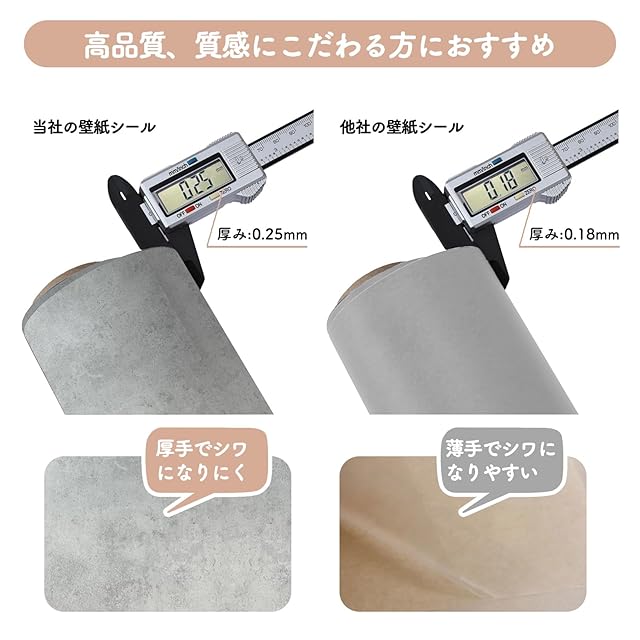 【はがせる&お手入れ簡単】0.28mmの厚みがある故に皺になりにくく、破れにくい、本品自体は簡単に貼ってはがせるシールタイプなので賃貸にも安心です。壁紙の表面にはPVC防水加工が施されているので汚れがつきにくく、さっと拭くだけで簡単にお手入れできます。