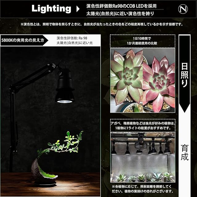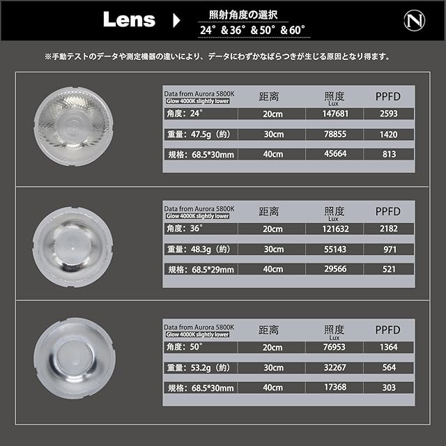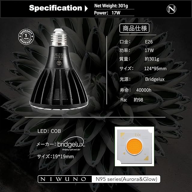 Niwuno(ニウノ)「2025年新型Updated」植物育成LEDライト Aurora N95 Pro 白色系 高PPFD 高力率 高演色性 フルスペクトル 植物用LEDライト レンズ外し可能 長寿命 E26口金 集光レンズ(24°)付き広角レンズ(50°)付き(Aurora N95 Pro Max,5800K,17W)