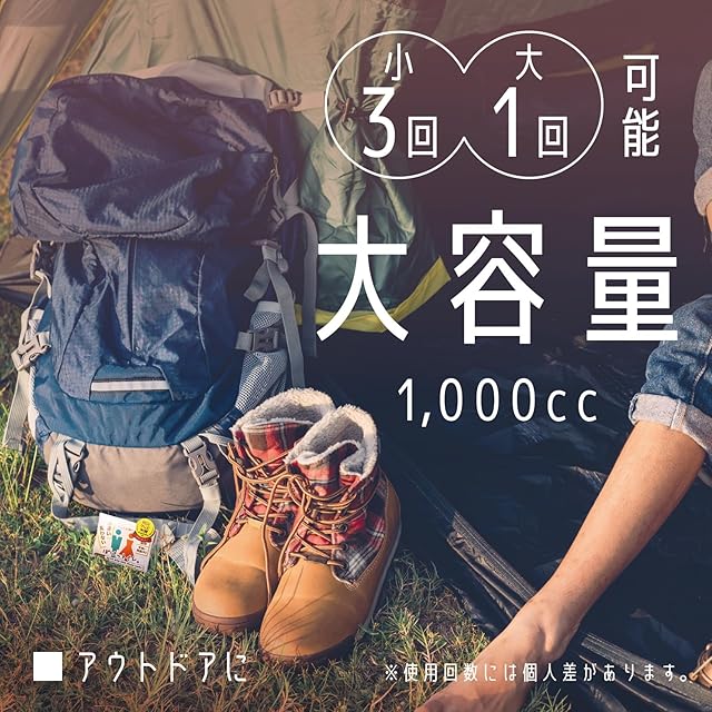 【大容量排泄袋】1,000ccの大容量で、1個あたり小3回、大1回に対応。安心の吸収力で、いざという時に頼りになります。