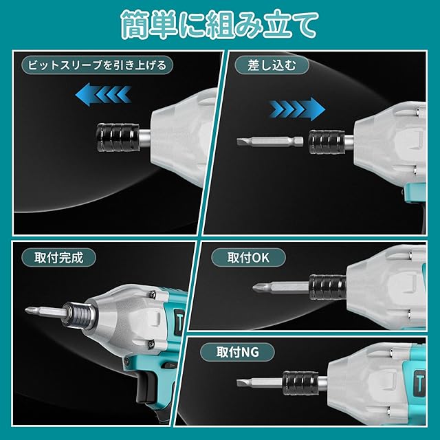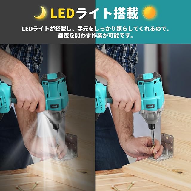 【LEDライト付き&軽量コンパクト】LED照明が内蔵されており、暗い場合でも作業エリアをはっきりと見ることができ、作業効率と安全性が向上します。電動ドライバー インパクトは重さはわずか1.39KGで、長時間使用しても疲れません。