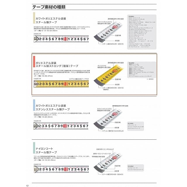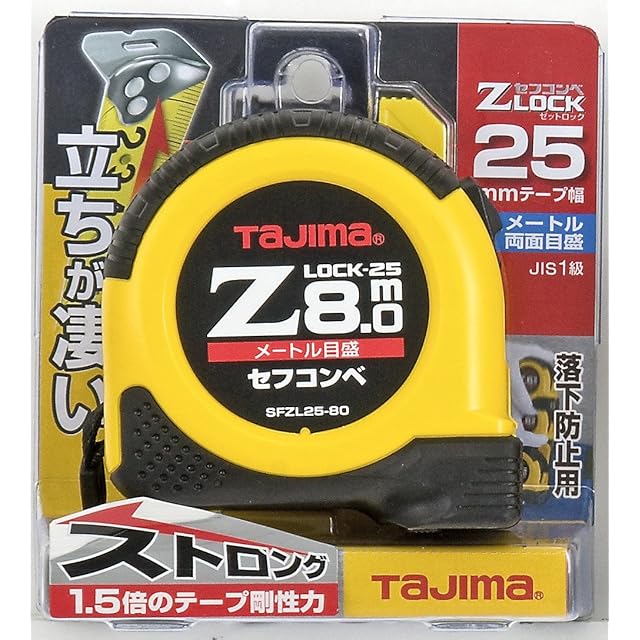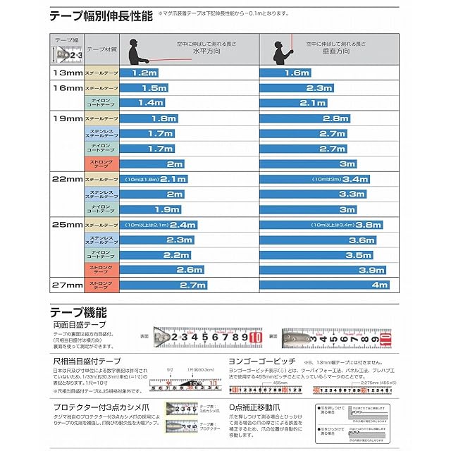 仕様:イエローテープ スチールストロングテープ 目盛仕様:メートル目盛(両面目盛) 包装形式:ブリスター ●JIS1級