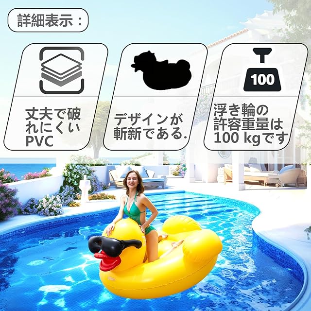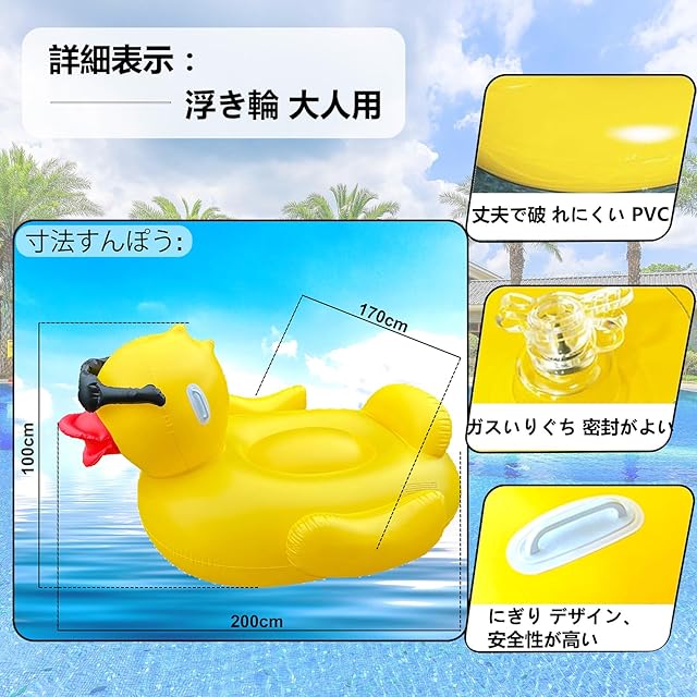 浮き輪 大人用 フロートジャンボゴムアヒル,あひる浮き輪 子供 特大きいサイズ 大人 アヒル羽 おしゃれ,大型プール 夏祭り 強い浮力 子供用 水泳リング 二人乗り小学生 男の子丈夫