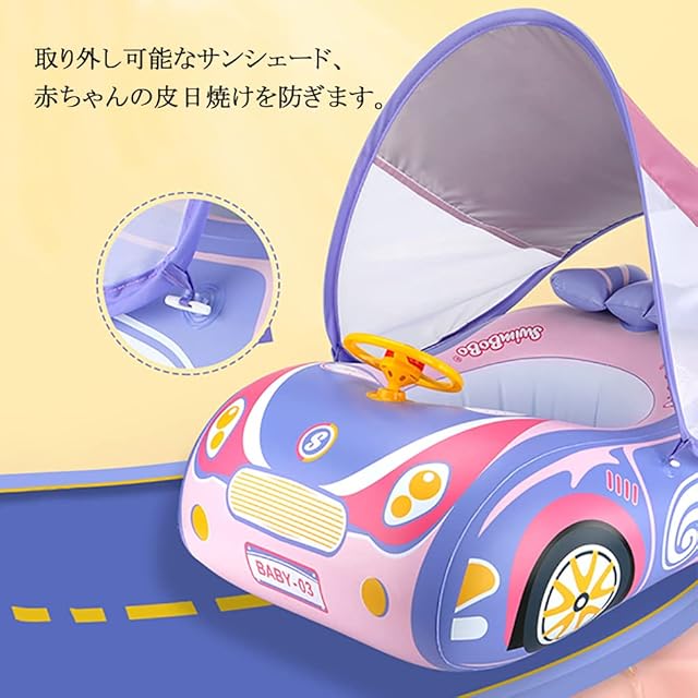 【ユニークで魅力的なデザインとUPF 50+取り外し可能なサンシェード】スーパースポーツカーベビー浮き輪、取り外し可能なサンシェードが装備されており。 赤ちゃんの成長をよりよくケアするために、UPF 50+日焼け止めを達成できます。足入れ浮き輪は子供たちが泳いだり、プールで遊ぶことができます。