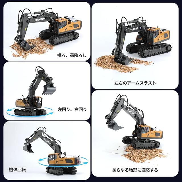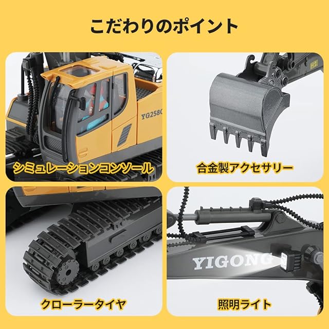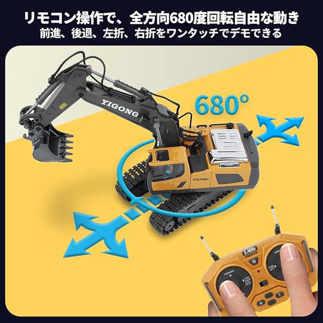 680度回転&リモコン制御:前後左右に動くだけでなく、アームにも680度回転することができます。細かな調整も可能で、本格的な運転感を味わえます。ワイヤレスリモコンによる無線操作で、ショベルカーを自由自在に操ることができます。子供から大人まで楽しめる、家族で遊べるおもちゃです