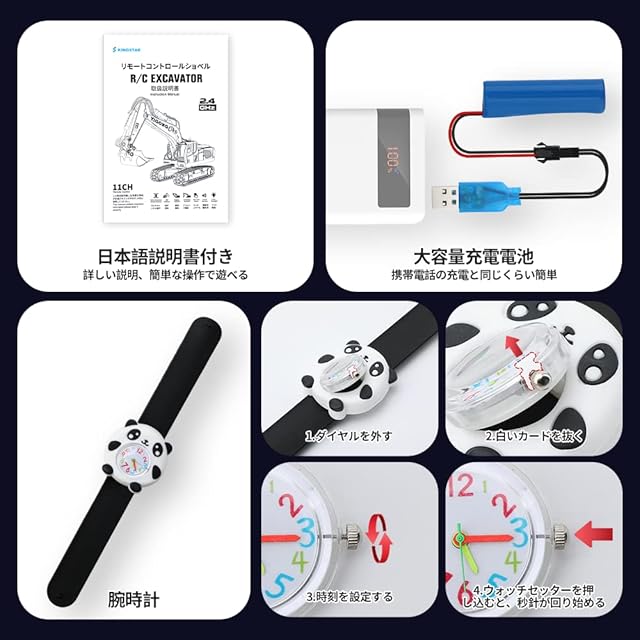 パンダウォッチと日本語説明書付き:かわいいパンダウォッチがプレゼントとして付属しています。電池が付属しているため、すぐに使用できます。時計としても使用可能で、お子様の日常生活にも役立ちます。日本語説明書も付きで、初心者でも簡単に遊びます
