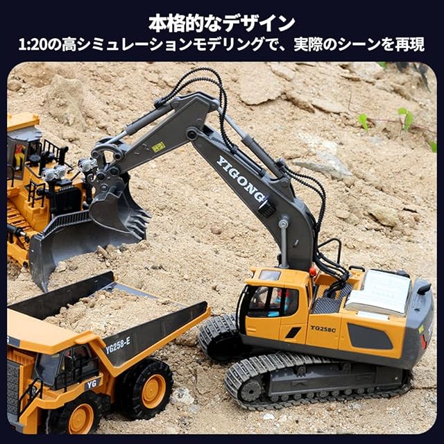 超人気な建設車両ショベルカー:子供たちが大好きな大型車両の中でも特に人気があります。荷台を上げたり下げたりして、おもちゃの中で自由自在に荷物を運ぶことができるので、子供たちはとても楽しく遊べます。リアルな操作感を味わいながら、お子様は自分だけの建設現場を作ることができます