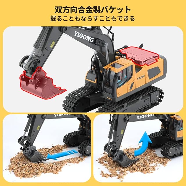 ショベルカー ラジコン おもちゃ 建設車両 パンダウォッチ付き |IKING 砂遊び こども向け エクスカベーター 充電式 コンストラクショントイ 多機能 2.4GHz 無線 1/18 680度旋回 LEDライト搭載 日本語説明書付き 合金製 室内 室外 男の子 砂場 誕生日 プレゼント ショッピングカート 贈り物 (ショベルカー)