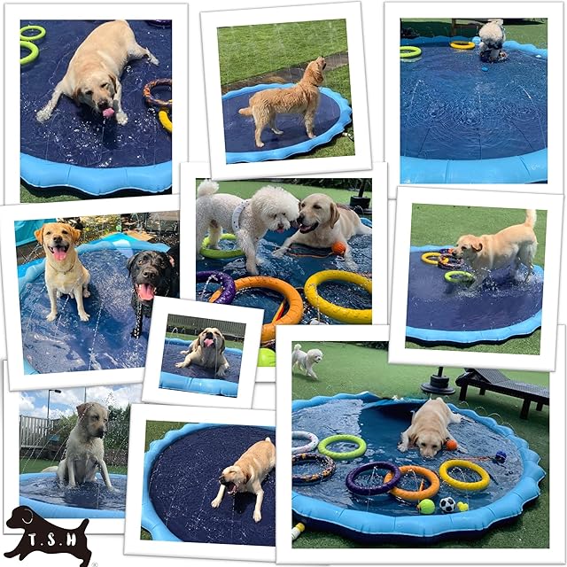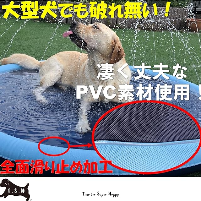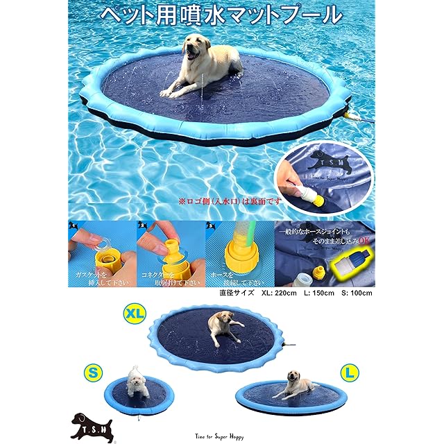 噴水マットプール 【XL・220cm】 ペット用 プール キッズ用噴水マット 高耐久 犬 子供用プール 折りたたみ ベビープール 持ち運び 簡易 夏 水遊び 小型犬 中型犬 大型犬 (XL・220) | つむぎ屋