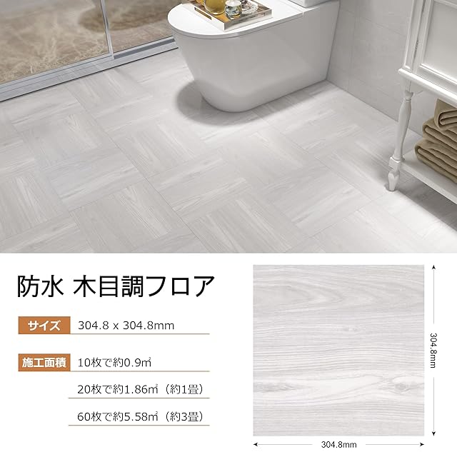 【使用場所、寸法】賃貸の部屋床 畳 玄関 床暖房 トイレ 防水 店舗 洗面所 浴室 脱衣所 洗面台 リビング 台所 寸法; サイズ:1枚の寸法:30.4cm×30.4cm: 厚み:0.8mm。