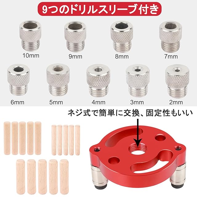 ドリルガイド ドリルスタンド 垂直 穴あけ 2/3/4/5/6/7/8/9/10mmスリーブ付き 6/8/10mm丸太ほぞ付き ダボ穴ガイド ドリルガイドキット ドリル位置決めガイド 木工工具 | つむぎ屋