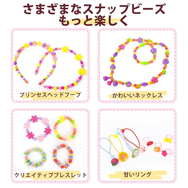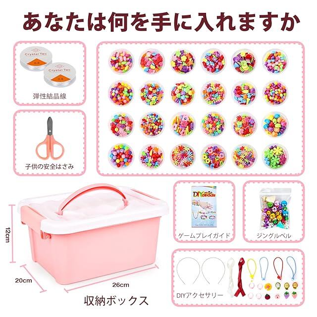 【メイキングトイ 女の子】さまざまなカラフルなビーズで、お子様がブレスレット、ネックレス、指輪、友達、お母さん、おばあちゃんのためのヘアバンドをDIYできます。 また、彼らの創造力を向上させ、色の感度を学びます。