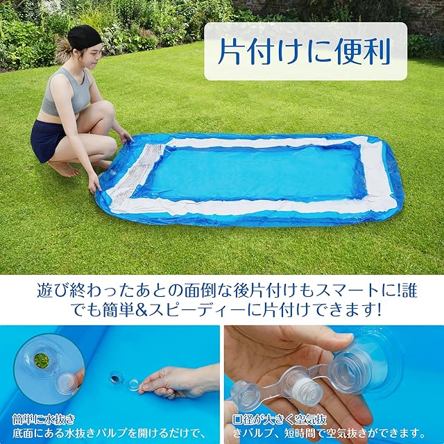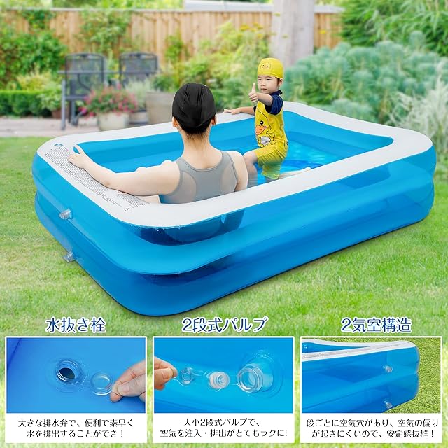 【商品仕様】プールサイズ:幅200cm×奥行き150cm×高さ50cm、材質:PVCタイプ:2層2気室。セット内容:プール*1。プールにエアポンプは付いていないため、別途購入してください。この家庭用プールはご購入日から1年間の安心が付いています。何か問題があれば、いつでも弊店にご連絡ください、プロのアフターサービスチームはお客様に100%満足のいく解決策を提供します。