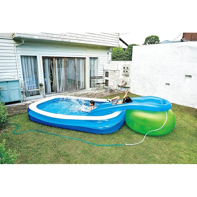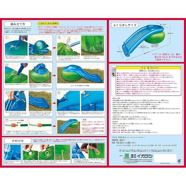 イガラシ ウォーターシャワースライダー 254×116×78cm(膨らましサイズ) シャワー付き 大・小 空気栓付 PAB-SLV BL/GR | つむぎ屋
