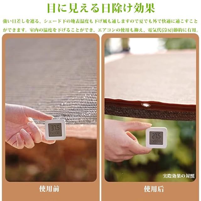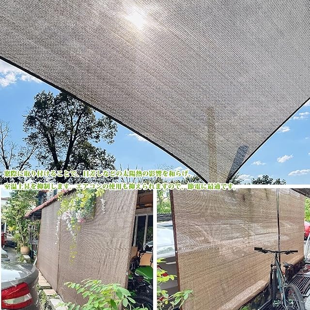 【UV紫外線カット・日除けシート】優れた耐久性を持ち、紫外線に強く、色あせにくい日除けシートです。ベランダ日除けとしても最適です。直射日光を遮り、紫外線を約95%カットし、遮光率は約85%です。風も通り抜けるため、夏でも外で快適に過ごせます。窓辺に取り付けることで、日差しや太陽の熱の影響を和らげ、室温の上昇を抑制します。家具を紫外線から保護できます。エアコンの使用も抑制され、節電に最適です。夏に冷房をつけずに、省エネでエコな生活を送りたい方におすすめです。