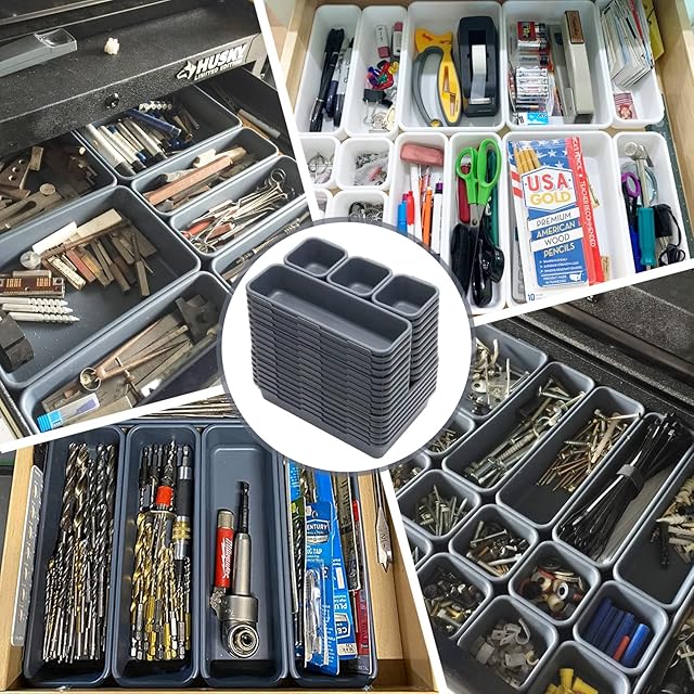 42個セット。ツールボックスストレージとオーガナイザートレイディバイダー。KeFantaは作業中にハードウェアとツールを整理するのに役立ちます。KeFantaツールボックスディバイダーの特徴と利点。耐久性のあるPPプラスチックで破損しにくく、長期間使用できます。 滑り止めの連結設計で、どんなサイズの引き出しにも合うようにレイアウトをカスタマイズできます。 カスタマイズ可能な大容量のストレージ容量。工具、スペアパーツ、釘、ネジ、ボルト、タックル、その他の小さな部品の収納に最適です。
