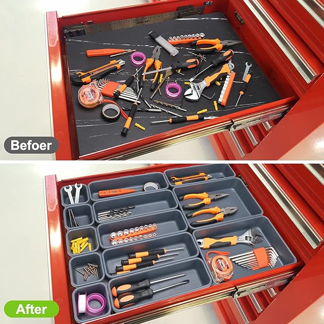 【ツールをきちんと整理】ツールトレイは、引き出しの中のすべてを整理し、ツールボックス、ツールカート、ローラーツールチェスト、ワークベンチなどに最適。