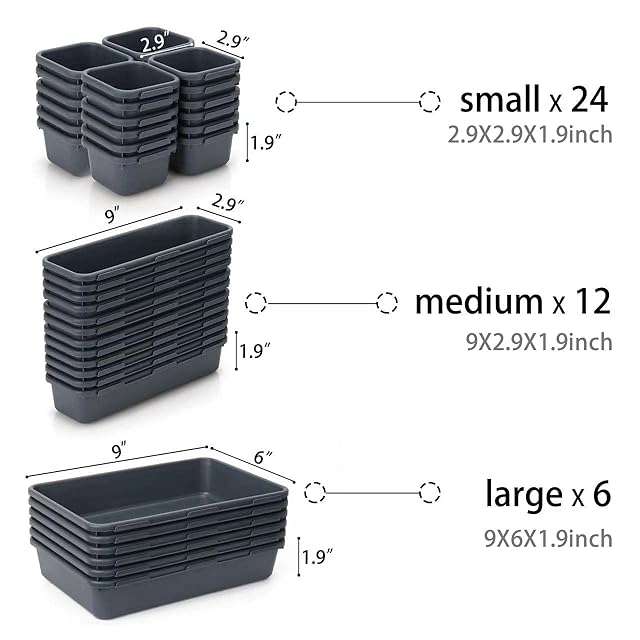 【3サイズのトレイ42個】パッケージにはSサイズ(2.9×2.9×1.9インチ)24個が含まれています。7.5×7.5×1.9インチ)12個、Mサイズ(9×2.9×1.9インチ)- 23.5×7.5×4.8cm、6個Lサイズ(9×6×1.9インチ)。 22.9 cm)-23.5×15.5×4.8cm。 全体で33インチ x 33インチのエリアをカバーし、総合的なツールの武器を収納できます。