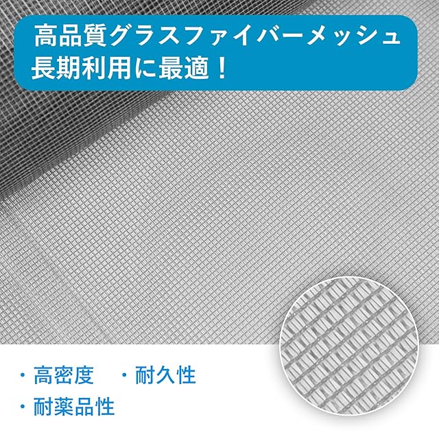 【高品質網戸ネット】ポリエステル製で作られた、、高温処理によって優れた耐食性を持ち、掃除しやす。極細メッシュが蚊・微小害虫を確実ブロック。耐衝撃性で、ペットの爪あとも全く無縁の防護盾に。