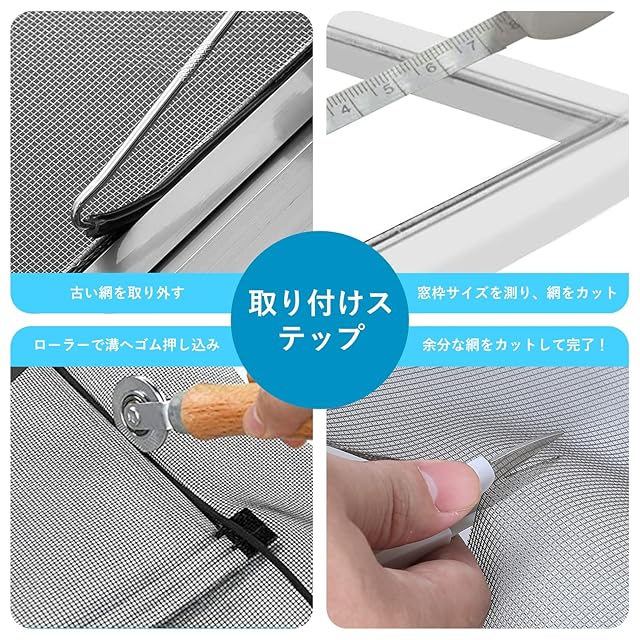 網戸 張り替えセット 【20メッシュより3倍細かい!!】あみど網張り替えセット DIY網戸ネット 簡単取り付け 補修 防虫ネット 150×250cm 虫除け 簡単設置 5点工具セット付き(グレー) | つむぎ屋